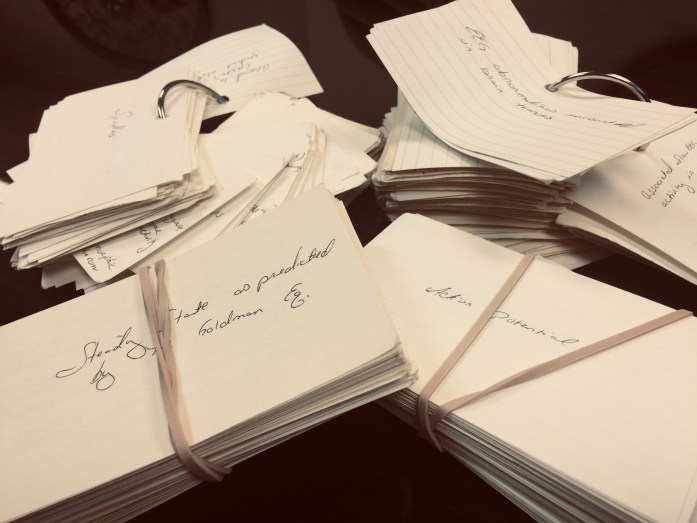 Notecards encourage recall and repetition…instead of simply staring at a passage or a concept on a page, they can actively improve your retention of the information.